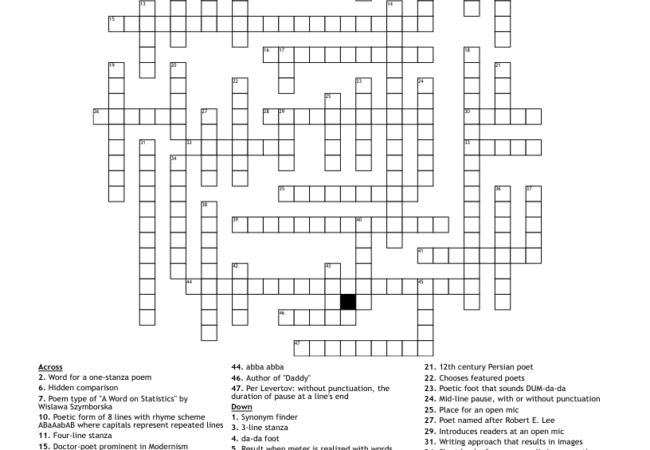 Poet Crossword Puzzle Clue Are you a fan of crossword puzzles and find yourself stumped by the clue "poet crossword puzzle clue"? Don't worry, we've... Kevin Dayton November 14, 2025
